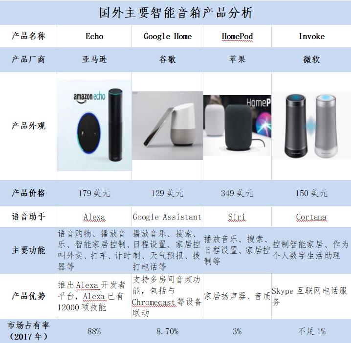 國(guó)外主要智能音箱產(chǎn)品分析