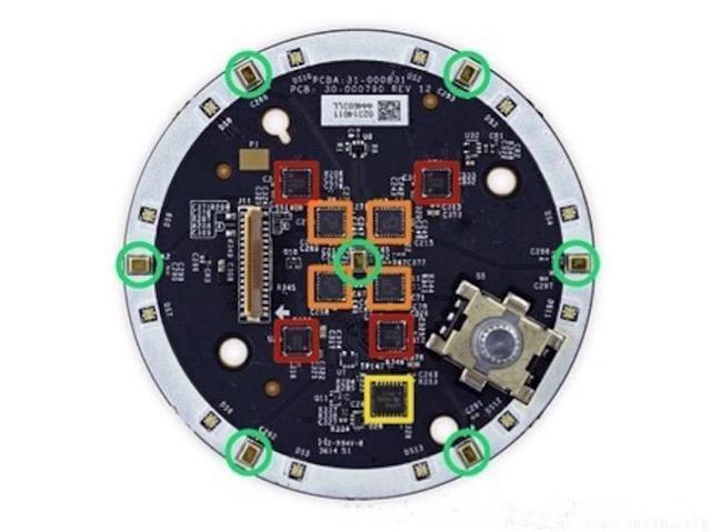 下圖展示了 Echo 拆解后的部件??梢钥吹剑悄芤粝涞挠布⒉凰銖?fù)雜(相對(duì)于無(wú)人駕駛等“重型”AI 產(chǎn)品)。