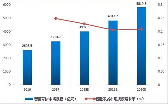 2016-2020e中國智能家居市場規(guī)模及增長情況