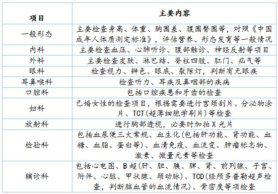 主要體檢項目