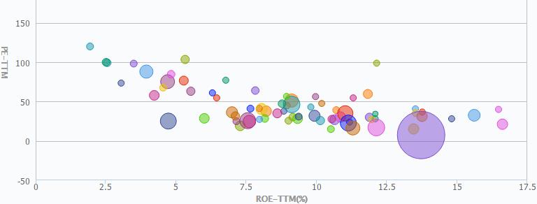 健康體檢行業(yè)市盈率(PE)為98.77,其凈資產(chǎn)收益率(ROE)為12.14%,相較其他行業(yè)而言處于較高位置;健康體檢行業(yè)的總市值為384.53億元,相較其他行業(yè)而言,處于較低水平。