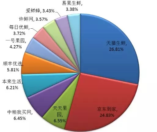 國內(nèi)生鮮電商市場份額分布