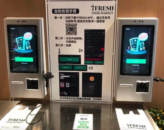 選購?fù)戤?,消費(fèi)者可在7fresh店內(nèi)實(shí)現(xiàn)自助結(jié)賬。具體操作如上圖所示,掃碼下載7fresh APP,通過手機(jī)號注冊賬號,點(diǎn)擊開始購物,掃描商品,進(jìn)行結(jié)算。但對于此全用戶手動操作的過程,如果顧客有意遺漏幾件商品的掃描與付費(fèi)呢?對于此問題,京東方面回應(yīng)稱“7fresh 是面向高素質(zhì)消費(fèi)群體的生鮮超市”。