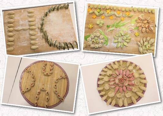 不一會(huì)兒,一“只只”精巧的餃子誕生了,元寶餃子、月牙餃子、小魚餃子、玫瑰餃子……不同的形狀、不同的顏色、不同的寓意,處處“飄散”著溫暖、溫馨和感動(dòng)。